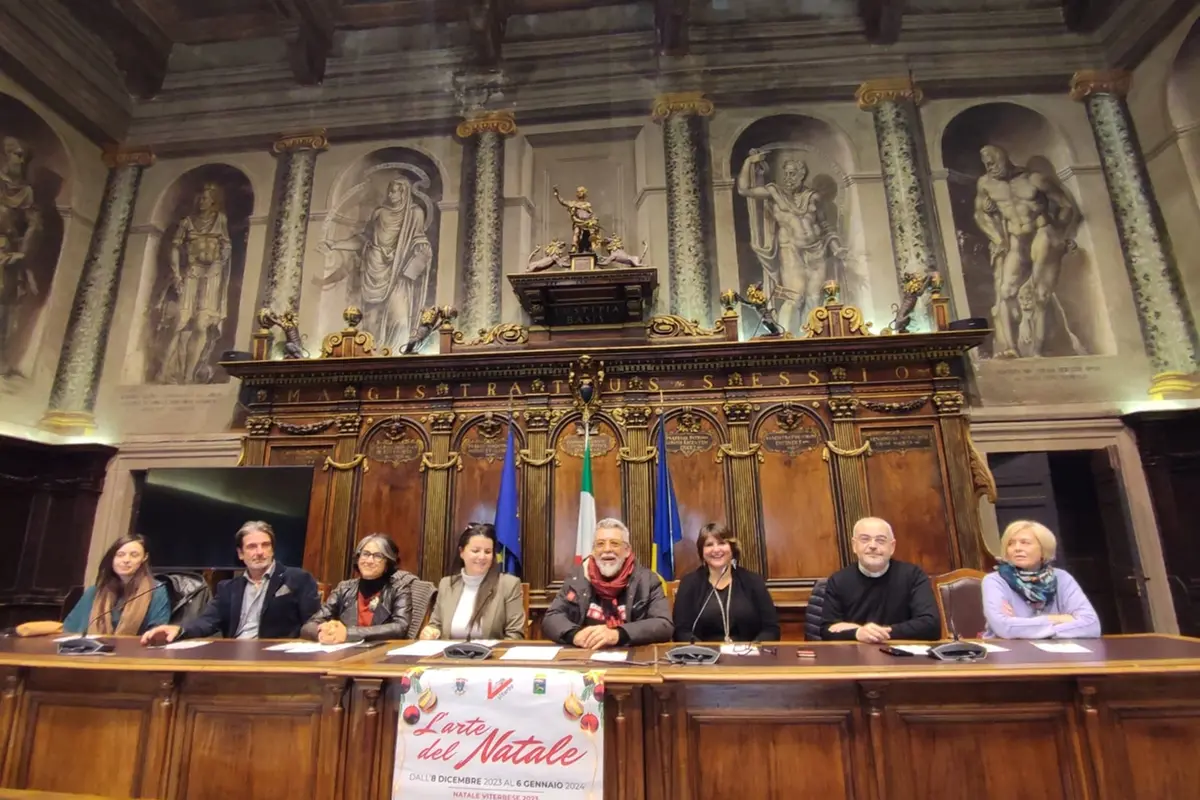 A illustrare gli eventi la sindaca Chiara Frontini; l’assessore alla cultura Alfonso Antoniozzi; la presidente della Proloco di Viterbo Irene Temperini con le sue collaboratrici Vera Anelli e Beatrice Ciprini; don Massimiliano Balsi, vicario episcopale alla cultura della Diocesi di Viterbo e parroco di La Quercia; Vittorio Digiacomantonio (responsabile reparto neuropsichiatria della casa di cura Villa Rosa) e la sua collega Ambra Pierantoni. Per tutto il periodo (8 dicembre-6 gennaio) sarà aperta nella parte interna del complesso di Santa Maria della Quercia, la mostra “100 presepi nel chiostro”; il 21 dicembre alle 21 spazio a “Sol invictus: notte delle fiaccole” a Pianoscarano, una serata suggestiva tra candele e racconti. Il 26 dicembre e 6 gennaio, dalle 17 alle 19, rappresentazione del presepe vivente nel chiostro grande coperto del complesso monumentale: tra sapori e candele un viaggio nel tempo, nella storia e nell’arte. Dopo i saluti della sindaca Chiara Frontini e dell’assessore Antoniozzi ha preso la parola Irene Temperini che ha ricordato «gli 800 anni dell’invenzione del presepe che la dobbiamo a San Francesco: abbiamo voluto rilanciare la mostra dei cento presepi e dargli una nuova veste. Coinvolgeremo, quest’anno, gli ospiti della casa di cura Villa Rosa ed i suoi operatori lavorando e mandando un messaggio chiaro sull’inclusione. Avremo come figuranti, per questa nona edizione dei Cento presepi, quindi, persone speciali che interpreteranno i vari personaggi del presepe». Don Massimiliano Balsi, padrone di casa a La Quercia, ha illustrato tutti gli eventi natalizi specificando che «partiremo con i Cento presepi, ormai per noi una tradizione, che verranno inaugurati alle10 dell’8 dicembre, quindi verranno consegnati dei palloncini con un pensiero per ogni fedele alla Madonna della Quercia e verranno fatti volare poco dopo tutti insieme. Nel pomeriggio ci sarà il concerto dei ragazzi dell’oratorio con la benedizione e l’accensione dell’albero di Natale. Il 17 avverrà la benedizione dei bambinelli e quindi, il 26 dicembre ed il 6 gennaio, il presepe vivente». Tra le novità ci sarà il dono che verrà fatto ai fedeli alla santa messa di un piccolo calendario, simbolo della preziosità del tempo. Vera Anelli ha parlato dell’evento che «sarà fatto nel posto più tipico di Viterbo, il quartiere antico di Pianoscarano. Parlo di Sol Invictus, la notte delle fiaccole: verranno illuminate tutte le principali piazze e ci saranno le vecchie ricette e poesie» che porteranno indietro nel tempo. Il lavoro di Villa Rosa, nell’inclusione, è fondamentale: «E’ un onore per noi partecipare all’iniziativa L’arte del Natale – ha detto il neuropsichiatra Vittorio Digiacomantonio – in un momento come il Natale in cui il disagio, se c’è, si evidenzia di più. I numeri dei giovani che si rivolgono a noi è in crescita esponenziale ed iniziative come queste sono importanti perché coinvolgono i ragazzi e non li si chiama solo per curarli come pazienti».