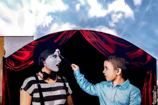 “Spiegare il colore”, la recente opera realizzata dal viterbese Fabio Fasanari, da tutti conosciuto come Faziarte, è candidata come Miglior Murale del Mondo 2025 dall'associazione internazionale Street Art Cities. Il murale è stato ufficialmente candidato il primo gennaio dall'associazione internazionale Street Art Cities, realtà che all'inizio di ogni anno candida i migliori murales realizzati nel mondo nell'anno appena passato. La votazione per eleggere il “Best Mural of the World” è pubblica ed è aperta fino a sabato 31 gennaio . I primi di febbraio verrà eletto il vincitore. Un'opera di 18 x 9 metri, un'immagine semplice ma potente, un mimo in bianco e nero, rigido, immobile, simbolo di un mondo adulto spesso spento e condizionato, viene toccato da un bambino che gli “macchia” il volto con il colore. Quel gesto spontaneo trasforma tutto: un pennello innocente diventa un'arma capace di abbattere barriere, paure e pregiudizi che costruiamo crescendo.