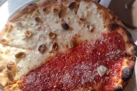Diciamo subito che la pizza è fantastica, come nella storia dei Chinappi, noi l’abbiamo fatta arrivare al tavolo per usarla come appetizer, quella metà e metà, ovvero mozzarella e olive e marinara col pecorino.