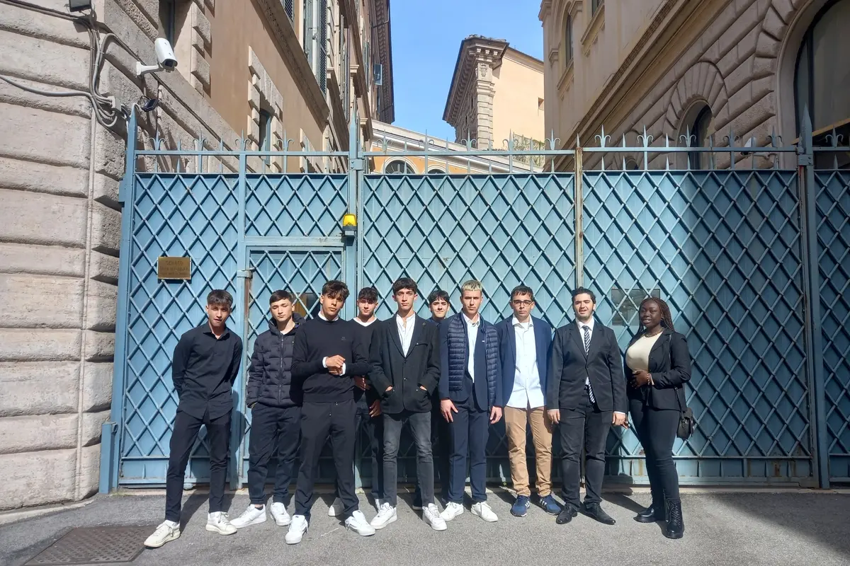 Partecipare al dibattito parlamentare del Senato della Repubblica: una possibilità straordinaria che per alcuni allievi dell’Istituto Alberghiero di Ladispoli è divenuta realtà giovedì 11 aprile, al termine di un percorso interdisciplinare di Educazione Civica e Orientamento formativo dedicato al tema delle Istituzioni. Le classi IV KA e IV KB, accompagnate dai docenti Concetta Allocco, Sara Monte, Pasquale Ricci, Maria Pia Tito e Federica Sbrana, si sono recate a Palazzo Madama per assistere allo svolgimento di una seduta parlamentare. Entrati dall’ingresso di Piazza della Costituente, gli allievi sono stati accolti nel Cortile d’Onore per poi raggiungere, al secondo piano, le tribune dell’Aula dove era in corso il dibattito per la risposta alle Interpellanze presentate dai senatori: fra le altre, l’Interrogazione con carattere d'urgenza sulle celebrazioni del centenario della morte di Giacomo Matteotti, l’Interrogazione sulla possibilità di percepire l'assegno unico per i figli a carico per le donne ospitate presso i Centri antiviolenza e quella sulla richiesta di registrazione europea dell'indicazione geografica "Cuba" per il Rum presentata dal Governo di Cuba all’UE nel 2021. In Aula era presente anche il ministro allo Sport e ai Giovani, Andrea Abodi. «Saluto i docenti e gli studenti dell’istituto superiore “Giuseppe Di Vittorio»: con queste parole il Presidente della Seduta ha accolto gli allievi dell'alberghiero poco dopo il loro ingresso in Aula. «Un’esperienza straordinaria - hanno raccontato dalla scuola - che si è conclusa con il dono fatto agli studenti, prima del loro rientro a Ladispoli, di una copia anastatica della Costituzione firmata da Enrico De Nicola a Palazzo Giustiniani il 27 dicembre del 1947, con le controfirme del Presidente dell’Assemblea Costituente Umberto Terracini e del Presidente del Consiglio dei Ministri Alcide De Gasperi».