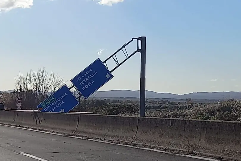 Tragedia sfiorata questa mattina in superstrada dove è caduto un grosso cartello stradale. Il fatto è avvenuto intorno all’ora di pranzo nei pressi dell’uscita per la Cassia e Vetralla, in direzione Monte Romano. Il cartellone ha ceduto, con tutta probabilità, a causa del forte vento che nella giornata di oggi ha creato problemi e disagi un po’ in tutta la Tuscia. Per un puro caso e per fortuna il cartellone, cadendo, non ha investito nessun’auto in transito. Sul posto è intervenuto immediatamente il personale Anas che ha convogliato il traffico sulla corsia di sorpasso