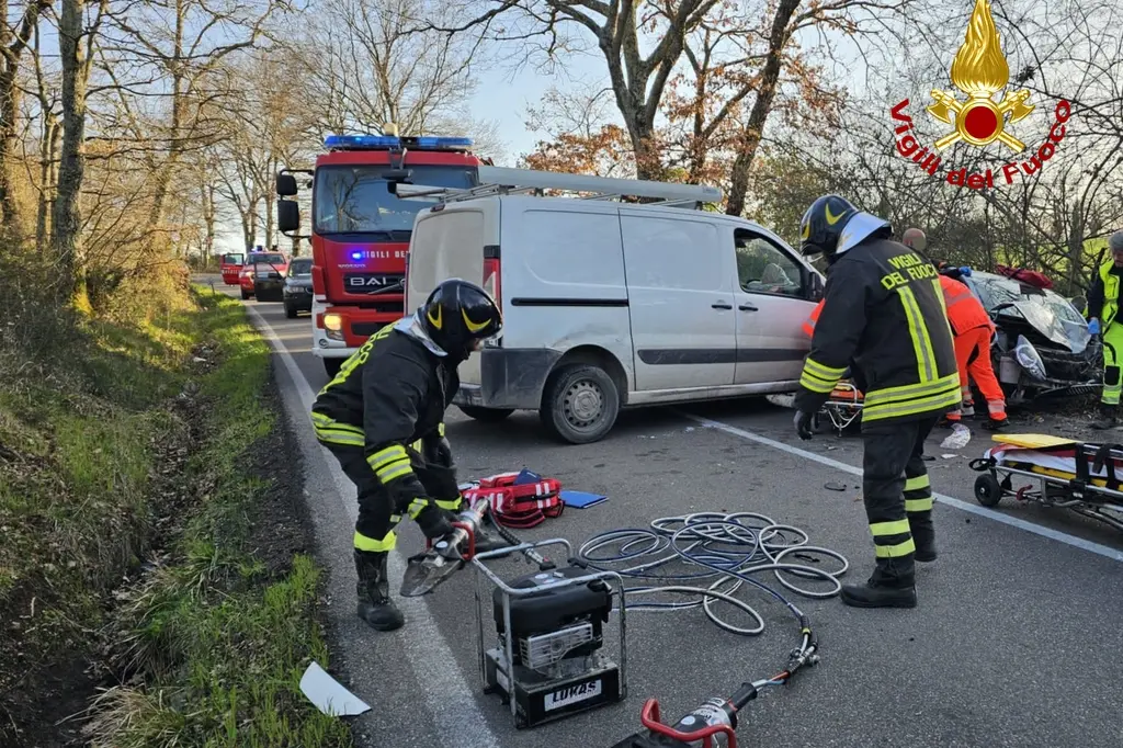L’incidente è avvenuto intorno alle 17 sulla Cassia Nord al chilometro 107, in località Sant’Antonio. L’impatto frontale è stato violento tanto che l’auto si è “accartocciata”.