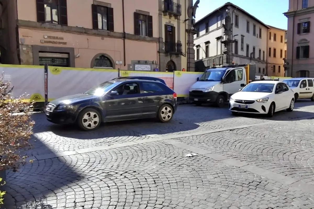 Continua la sosta selvaggia a piazza del Comune. Ormai le transenne del cantiere sono diventate il parcheggio “ufficiale” di tutti quelli che decidono di fermarsi in piazza.