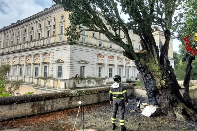 Un fulmine cade nei giardini di Palazzo Farnese a Caprarola e incendia un albero. E’ accaduto questa mattina a causa del maltempo che ha colpito la Tuscia. Sul posto sono intervenuti i vigili del fuoco di Viterbo che hanno domato le fiamme.