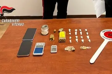 Durante una perquisizione domiciliare a Canino, i militari hanno rinvenuto e sequestrato 16 involucri in cellophane termosaldato contenenti 11,68 grammi di cocaina, un panetto di hashish del peso di 100,95 grammi e 4 frammenti di hashish per un totale di 28,31 grammi. Sono stati sequestrati anche due telefoni cellulari, due bilancini di precisione e materiale per il confezionamento delle dosi.