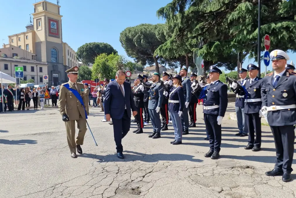 Il prefetto dopo aver passato in rassegna le truppe schierate ha preso posto accanto alla sindaca Frontini. In prima fila insieme a loro sindaca il presidente della provincia Alessandro Romoli, il vescovo Orazio Francesco Piazza, il questore Fausto Vinci, i comandanti provinciali dei carabinieri e della guardia di finanza, Massimo Friano e Carlo Pasquali e il consigliere regionale Enrico Panunzi.