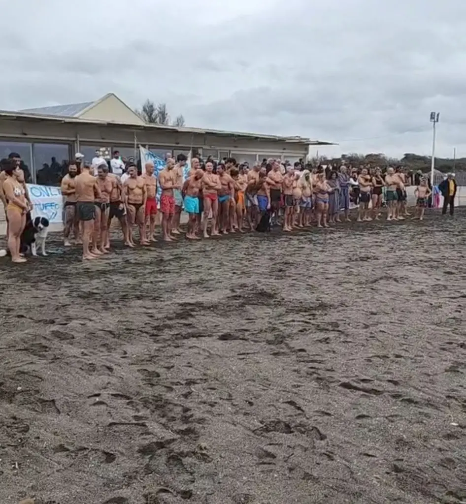 MONTALTO - L’associazione “Fischi di Tramontana” di Montalto di Castro ha dato il benvenuto al nuovo anno con il tradizionale “Tuffo al mare - Only the Brave” giunto ormai alla sua X edizione. Lunedi 1 gennaio 2024 alle ore 12 tanti si sono dati appuntamento in spiaggia nel tratto di arenile di fronte allo stabilimento Il Gabbiano.