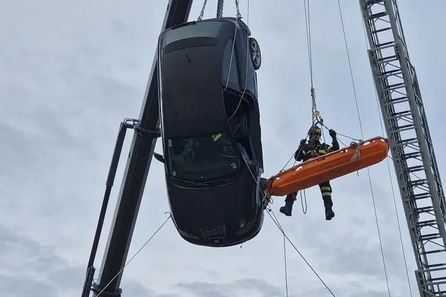 Infine, l’elicottero per operazioni speciali del 115, giunto appositamente dalla capitale, ha prelevato con il verricello di bordo un vigile e una barella, dando vita ad una spettacolare simulazione di salvataggio aereo.