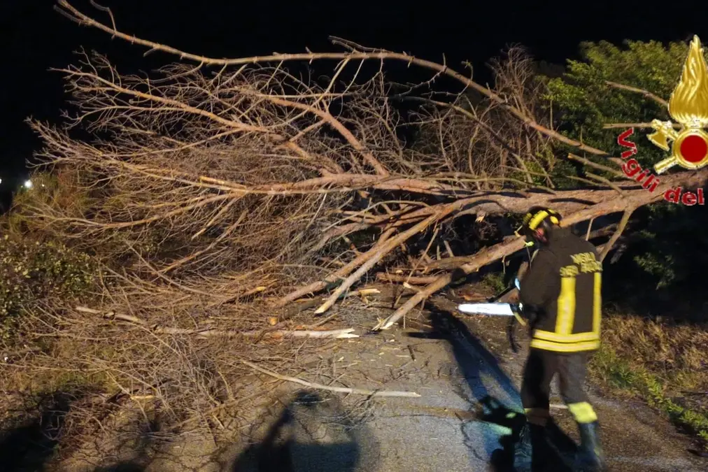 S. MARINELLA - I vigili del fuoco di Civitavecchia sono intervenuti in via Santa Maria delle Ancelle della Visitazione per l'abbattimento di un albero di alto fusto che a causa delle avverse condizioni meteorologiche e del forte vento minacciava di cadere sulla sede stradale.