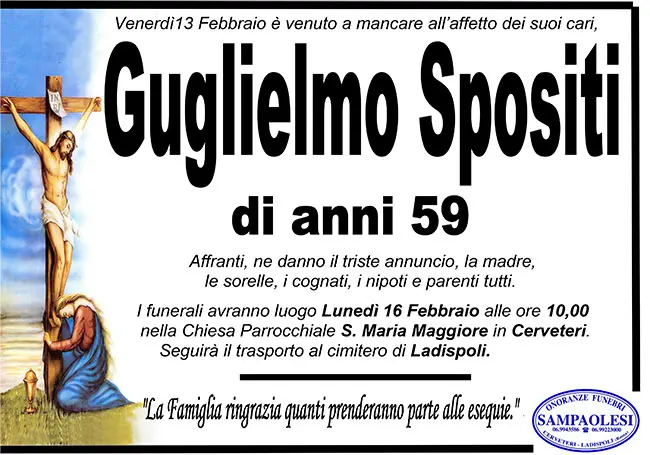 Home page>Necrologi>GUGLIELMO SPOSITI di ann...