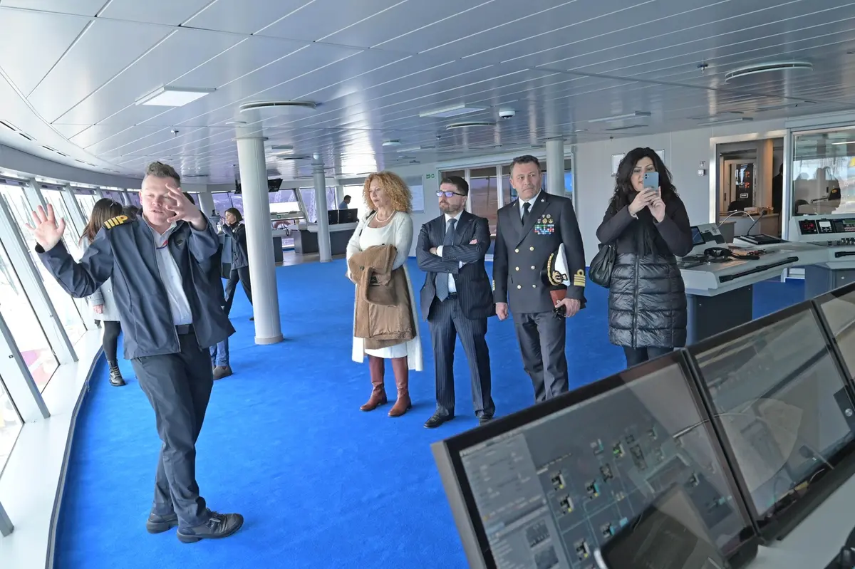 Ieri mattina a bordo si è tenuta la tradizionale cerimonia di scambio crest: a fare gli onori di casa Barbara Carabetti, ceo di dell’agenzia Cemar che gestisce gli accosti del gruppo Carnival, particolarmente soddisfatta per l’arrivo della nuova nave. Presenti il presidente dell’Adsp Pino Musolino, il comandante del porto Michele Castaldo, il vicesindaco Manuel Magliani oltre a rappresentanti del cluster marittimo.